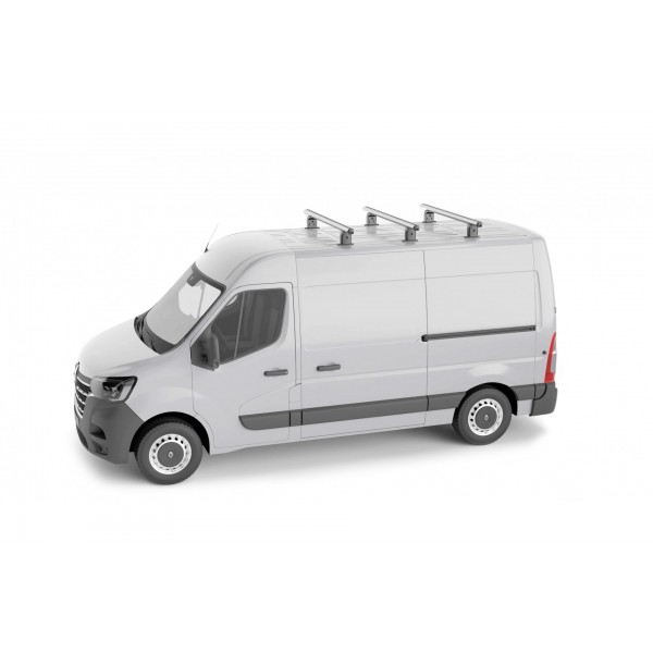 Πλήρες kit με μπάρες οροφής της εξελιγμένης αεροδυναμικής επαγγελματικής σειράς AIRDYN από την MENABO, 100% ιταλικής προέλευσης και κατασκευής. Από υψηλής ποιότητας ελαφρύ, ανθεκτικό αλουμίνιο, σε ασημί χρώμα και μεταλλικά πόδια, για μέγιστη αντοχή στον χρόνο, τις θερμοκρασίες και τα υψηλά φορτία. Κατάλληλες για χρήση σε συγκεκριμένα επαγγελματικά οχήματα και vans.